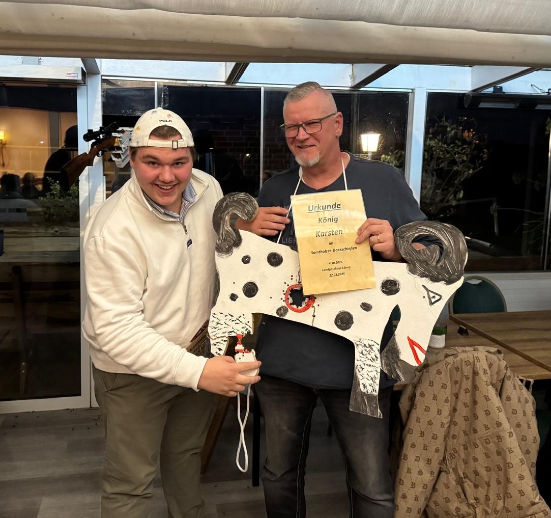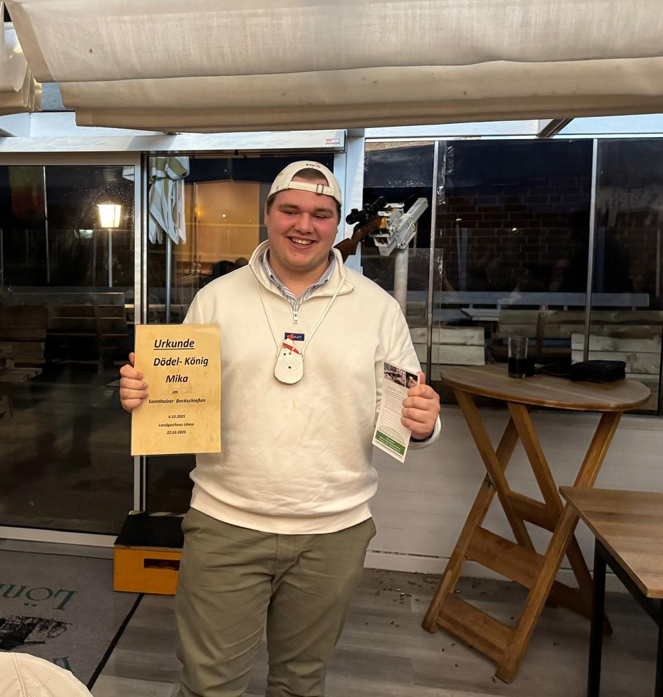 Mit 20 Ehrengardisten, darunter alle vorherigen Dödel und Bockkönige, wurde auf den Bock geschossen. Zwischendurch wurde sich, wie jedes Jahr, am sehr leckeren Schnitzelbuffet gestärkt. Zum Dödelkönig 2025 schoss sich Mika Lücke. Den Bock holte anschließend Karsten Brinkmann von der Stange.